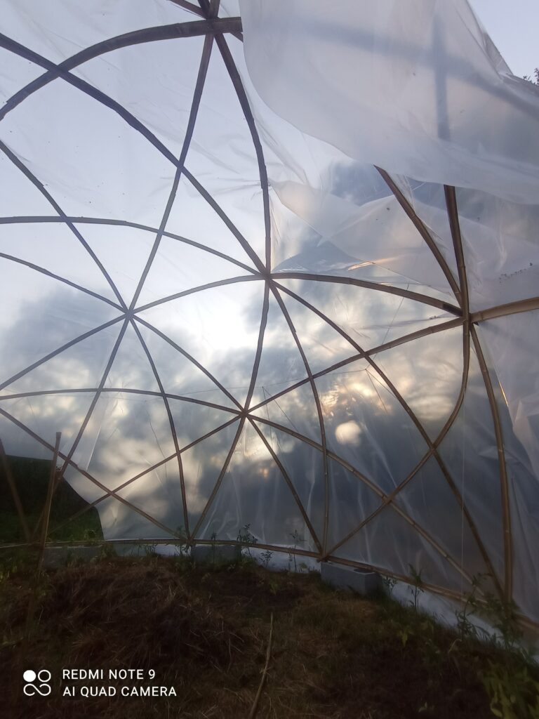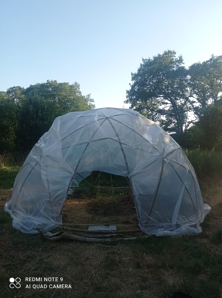 C’est une structure démontable si nécessaire, capable d’être déplacé facilement à plusieurs et pouvant être habillé de plein de manières différentes : tissus, toile, végétaux tressés ou grimpants…