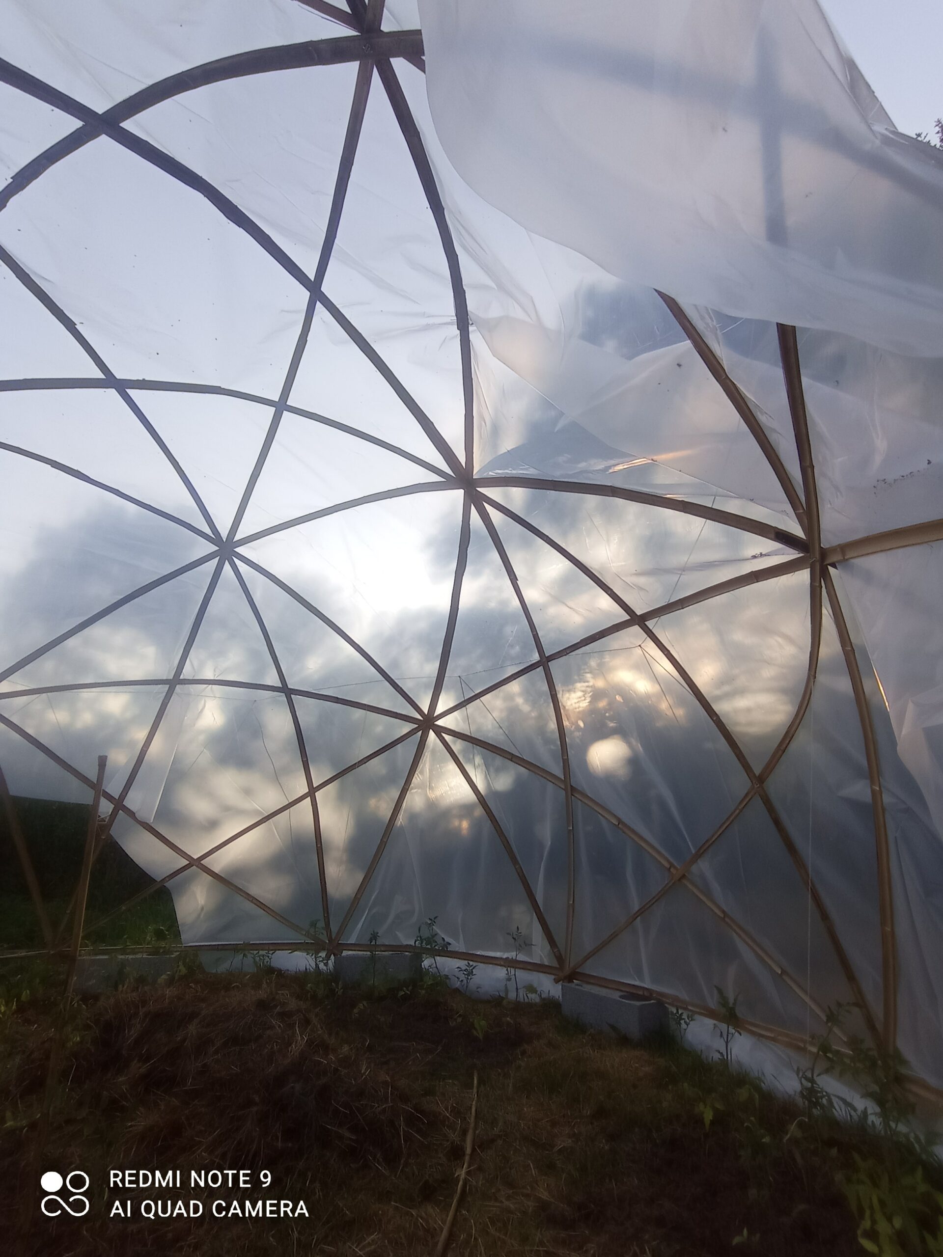 C’est une structure démontable si nécessaire, capable d’être déplacé facilement à plusieurs et pouvant être habillé de plein de manières différentes : tissus, toile, végétaux tressés ou grimpants…
